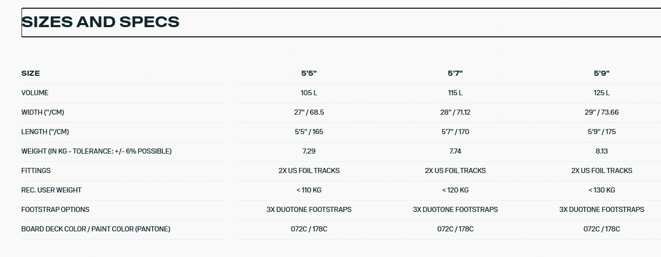 Built with our solid vacuum epoxy construction and reinforced stress areas, the Sky Free is both durable and resilient. Available in three sizes: 5’5’’ with 105l, 5’7’’ with 115l, and 5’9’’ with 125l volume.
