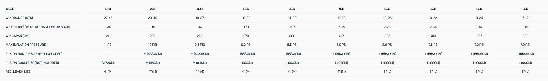 Available sizes: 2.0 | 2.5 | 3.0 | 3.5 | 4.0 | 4.5 | 5.0 | 5.5 | 6.0 | 6.5